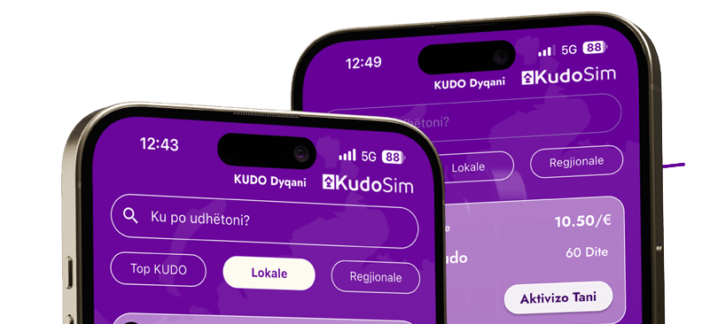 Shfleto me internetin më të shpejtë në Evropë dhe Kudo. Kur pako të përfundojë, mund ta rimbushësh lehtësisht dhe të njëjtin eSIM përmes aplikacionit Kudo eSIM që mund ta Shkarkoni këtu